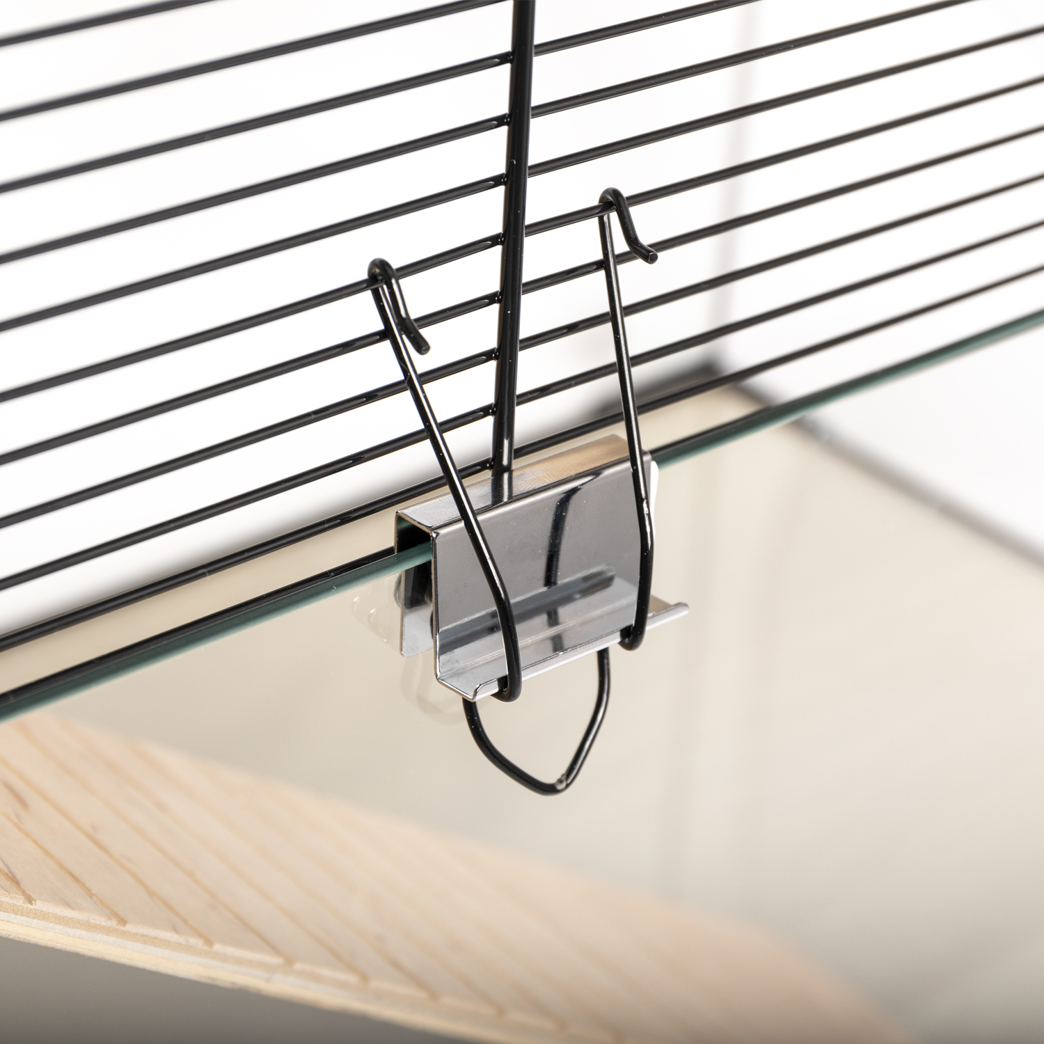 • Wyjmowana szklana podstawa ułatwia sprzątanie i wymianę ściółki.