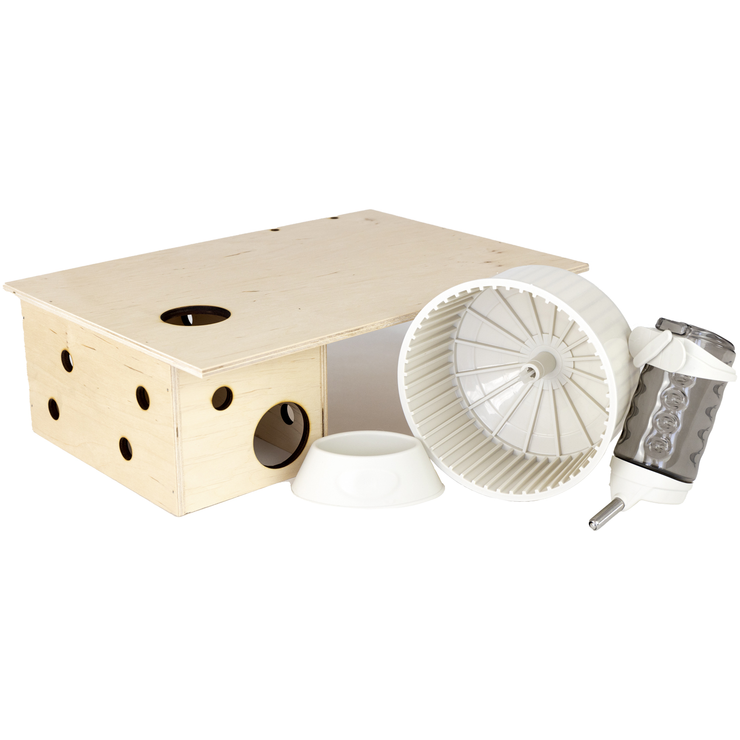 PETER PAN niecodzienny design ASTRO 2 z bogatym wyposażeniem AMBER poręczny transporter dla gryzoni ASTRO NATURE wyposażona w drewniane akcesoria